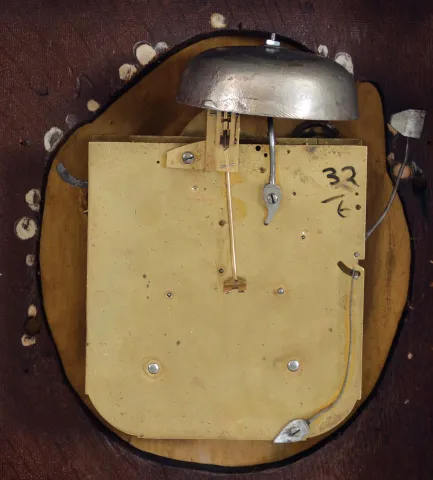 (1) Refinished oak case in nice condition. Original painted dial has been repainted and has some paint lifting near 12 o'clock. The box behind the dial has been replaced. Original hands. The movement is stamped "R M S" with a rose engraved above the letters. (2) Inlayed mahogany case in an old finish has a couple seam cracks in the veneer at the top corners. Silvered engraved brass dial in nice condition. Original hands.