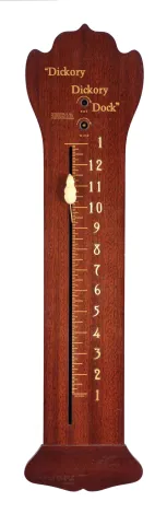 Clocks- 3 (Three) Wall Clocks: (1) Seth Thomas Clock Co., Thomaston, Conn., "Delaware", time only miniature banjo clock with lever movement in a mahogany case with glasses featuring George Washington and Mt. Vernon, c1954; (2) The Horolovar Co., New York, " Dickory, Dickory, Dock" novelty clock, 8 day, time only German balance wheel movement, c1970; (3) Hubert Herr, Triberg, Germany, for Welby Corporation, cuckoo & quail wall clock, 30 hour weight-driven in a carved wood case, c1965. (1) a few small nicks to finish of the mahogany case. Nice silvered dial and rear label. Movement ticks, but was not tested long term; (2) This reproduction has a nice original dark finish, and the mouse is complete with its tail. The balance wheel movement ticks when wound; (3) Many scratches to wood finish. Both birds present with articulating wings and beak. Bellows have been restored. Sold "as is".