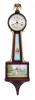 Clocks- 3 (Three) Wall Clocks: (1) Seth Thomas Clock Co., Thomaston, Conn., "Delaware", time only miniature banjo clock with lever movement in a mahogany case with glasses featuring George Washington and Mt. Vernon, c1954; (2) The Horolovar Co., New York,