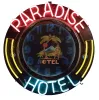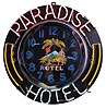 Paradise Hotel" three color neon electric wall clock, time only, with sweep seconds hand