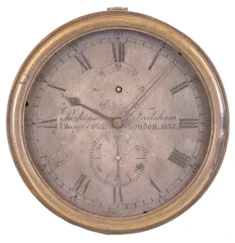 Parkinson & Frodsham, London, a two day marine chronometer movement and dial, with tub, serial #1135, for parts balance pivots broken, detent broken