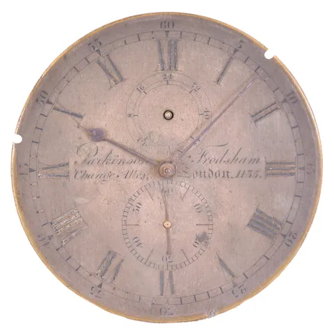 Parkinson & Frodsham, London, a two day marine chronometer movement and dial, with tub, serial #1135, for parts