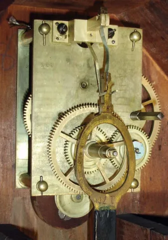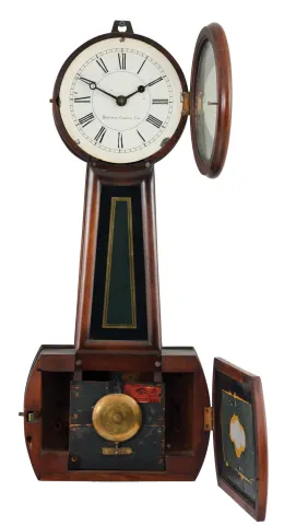 Boston Clock Co., Boston, Mass., 8 day, weight driven, brass movement banjo timepiece.