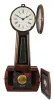 Boston Clock Co., Boston, Mass., 8 day, weight driven, brass movement banjo timepiece. Refinished cherry case in very nice condition. Original painted dial has some loss at the mounting screws and a couple small spots on the edge. The baffle in the throat looks to be missing. The bottom tablet has some lifting of the background in the center area. Original hands.