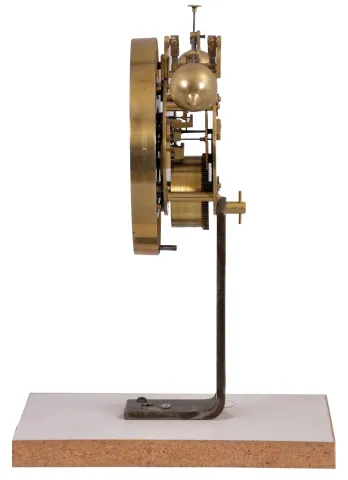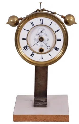 Boutteville a Paris, a year going clock movement with equipoise pendulum, Roman numeral white enamel dial with sunk center, the recessed panel with seconds bit and wind indicator, blued steel Breguet style hands, brass movement with round plates and Leroux deadbeat escapement, with purpose made base dial with faint hairlines and losses to figures and outer divisions, movement dirty, will run, but service and adjustment will be required for long term reliability
