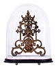 frames with minor tarnish and polish residue, back cock replaced, dial lacking silver, dial feet replaced, hands painted black, ticking, pendulum replaced, base and dome not original to this clock