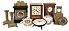 Clocks- 8 (Eight) Mantel & Desk: (1) Austria, bracket clock, 8 day, time and strike in a wood case with brass basket top and silvered chapter ring; (2) Winterhalder & Hofmeier, Germany, mantel clock, 30 hour, time and strike in a walnut case; (3) "Rapid