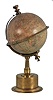 There are a number of minor repairs to the globe surface including a dime-sized patch in the Middle East. There is a small loss to the surface located in the Atlantic adjacent to an old repair and some excess glue. Long, shallow cracks along part of the equator and both poles. The clock is missing a small dimensional representation of the sun, which should be mounted on a curved wire extending from the base. The movement ticks briskly.