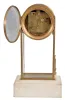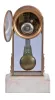 base dirty, and with minor flakes and bruises, gilding good, with minor losses, dial with chip at left winding arbor, hairlines at edge, 10:00, cracks and minor enamel loss at 2:00, these flaws are concealed by the bezel when closed, hands with minor oxidation and loss of color, movement with minor staining, ticks and strikes, enamel on pendulum with a few minor scratches