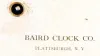 Baird Clock Manufacturing Co., Plattsburg, NY, 8 day, spring driven brass movement advertising wall timepiece. This timepiece advertises the English firm "Walkden's Inks" which was established at London, England in 1735. Walkden was the oldest existing company that commissioned Baird clocks. This is a rare model in excellent condition. Original paper dial in nice condition with only a small abraded area just below the winding arbor. Original hands and pendulum. Baird signed movement manufactured for him by the Seth Thomas Clock Company, the major supplier of Baird movements. The bottom board on the case behind the doors appears replaced.