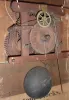 Seth Thomas, Plymouth, Conn., "Off Center Pillar and Scroll" clock with a weight driven 30 hour time and strike wooden movement in a mahogany veneered case. The mahogany case has been refinished. The strap plate movement is correct. The case has a nice interior label. The painted dial has had some of the numerals strengthened, but is handsome with an eagle in the center. The hands proper Thomas style finials may be newer. The tablet is new (by Tom Moberg) and the top door glass is replaced. Overall, a nice example of a scarce model.