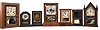 (1) The finish has been lost. The dial has been repainted. The hour hand is missing; (2) The dial board, dial and minute hands are replacements. There is minor veneer loss. The finish is heavily mottled. The glass tablet is cracked. (3) The dial is missing. The hands are replacements, There is some veneer loss. (4) There is veneer loss. The dial has been poorly repainted. The "ST" hands are original. The base is loose and needs to be reglued. (5) There is veneer loss. The gilt pieces have been painted gold. The dial has darkened and is showing loss. (6) The front plate to the ladder movement is missing. The hands and dial are missing. The paper finish is largely dried out and gone. (7) There is veneer loss. The dial has paint loss and the hands are missing. ***NOTE*** The dimensions are for clock number 4.