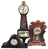 Clocks- 3 (Three) wood cased clocks: (1) New Haven Clock Co., New Haven, Conn., "No. 540", 8 day spring driven, time & strike with alarm parlor clock in a walnut case, c. 1890; (2) Wm. L. Gilbert Clock Co., Winsted, Conn., "Yorktown", 8 day spring driven,