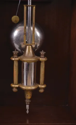 (1) Refinished walnut case in nice condition. Original paper dial has some wear and surface abrasion. Tablet looks to be later; (2) Refinished walnut case has minor damage on the upper left corner. Original paper dial has age darkened with surface abrasion. Original hands. Small portion of a label remains.