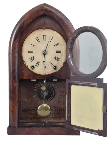 Brewster & Ingrahams, Bristol, Conn., 8 day, time and strike, spring brass movement round gothic or beehive clock.