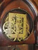 Mahogany veneered case in what looks to be a modern finish over an old and possibly original finish has some small chips on the bottom left side. Original painted wood dial has a partial hairline crack and some wear and stains. Replaced hands and tablet. Movement is signed and has original brass springs.