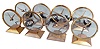 Clocks- 8 (Eight) Jefferson Electric Company, Bellwood, Illinois, "Golden Hour" electric mystery clock with hands suspended in clear glass dial in gold plated cases with classic mid-century modern design.