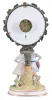 Overall good condition with no breakage of bisque figures or base, very slight loss of color on right red shoe, movement ticks when wound. These clocks were based on much older examples which provided light by candle at night to see the time.
