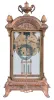 Clocks- 2 (Two) American shelf: (1) Ansonia Clock Co., New York, "La Pau", 8 day, time and strike, spring brass movement porcelain mantel clock; (2) Jennings Brothers. Bridgeport, Conn., crystal regulator, 8 day, time and strike, spring driven movement