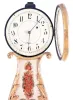 Gilded Lyre Timepiece marked "N, H. Brown", with arabic numerals, gilded bezel, carved and gilded lyre section, swelled side base and gilded pedestal below, eight day time only movement stamped "N. H. Brown" powered by a lead weight and regulated by a