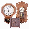 Clocks- 4 (Four) Wooden Wall: (1) Small driven mission style wall clock; (2) Ansonia time only store regulator; (3) Waterbury time only drop octagon; (4) New Haven "Eclipse" hanging gingerbread clock.