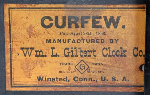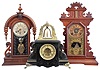 Clocks- 3 (Three): (1) F. Kroeber Clock Co., New York, "Parisian", 8 day, time and strike, spring brass movement walnut mantel clock, c1881; (2) William L. Gilbert Clock Co., Winsted, Conn., "Curfew", 8 day, time and strike, spring brass movement bell top