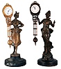Clocks- 2 (Two) Mystery Swingers: (1) Diana with porcelain arabic numeral dial with Junghans logo mounted on the pendulum and suspended from the patinated figure's outstretched arm, one-day movement, all on an ebonized turned wooden base; (2) Country Lady
