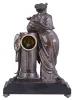 the bronze colored paint has failed in a couple of places, revealing spelter and flux beneath. The large piece of marble is very heavy and would make you think it is bronze, but it is not. Movement is sound; would benefit from cleaning. Large and imposing.