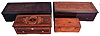 largest music box with segmented comb will play sluggishly when wound. Other three boxes will not play for various reasons and are sold for parts or repair. Dimensions provided are for largest music box. Sold "as is".