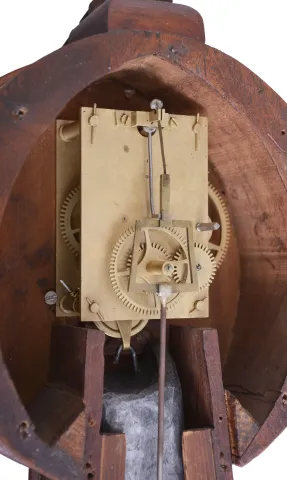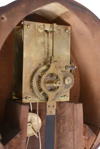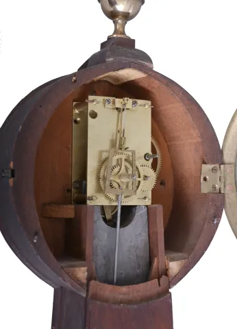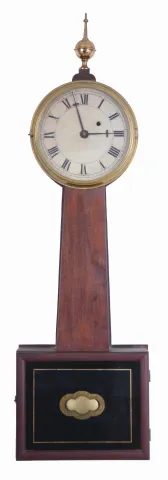 Clocks- 3 (Three) American Banjo Wall Clocks: (1) Unknown, possibly an Attleboro patent or Banjo clock or timepiece, 8 day, weight driven brass movement in a plain walnut case with painted metal dial; (2) Attributed to Horace Tifft, North Attleboro, Mass.