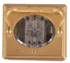 a bit dirty, gilding restored, right side glass with chip at lower right, left glass with chip at lower left, dial with minor scratches, movement with staining, gong with a few spots of oxide, running, striking, and repeating correctly, alarm not functional