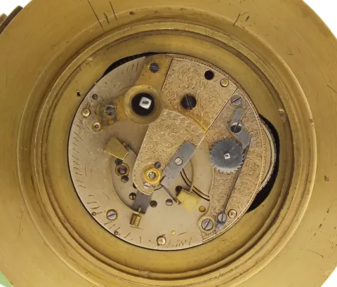 Two pocket chronometer movements, now in brass bowls for gimbal mounting, the first marked "Thos. Buchanan Dublin", 14 jewel fusee movement with Earnshaw spring detent escapement, Z balance with compensation limiting device and helical balance spring,