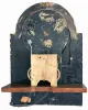 the case has been refinished and the feet have been shortened. The black numerals on the painted metal dial have been strengthened The bell and bell stand need to be reattached. This is otherwise a very nice example with a very rare Curtis label on dial, original wooden pulley and great original flame finials.