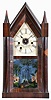 Beach and Byington, Terryville, Conn., steeple clock with a double fusee 30 hour time, strike and alarm movement in a rosewood veneered case.