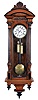 Clocks- 2 (Two) Vienna regulators: (1) Remember GR, Wien, 8 day, time and strike, weight driven movement in a walnut case with ebonized accents; (2) Unsigned movement, 8 day, time and strike with quarter strike, weight driven movement in a walnut case. (1) small splits around the edge of the door. Hairline cracks in the dial. Bottoms of weights need to be glued; (2) Hairline cracks in dial. Small dents in weights. Dimensions are for 3-weight clock. Sold "as is".