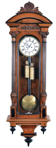 Clocks- 2 (Two) Vienna regulators: (1) Remember GR, Wien, 8 day, time and strike, weight driven movement in a walnut case with ebonized accents; (2) Unsigned movement, 8 day, time and strike with quarter strike, weight driven movement in a walnut case.