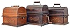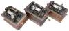 all three oak cases have old finishes and original domed lids with case decals. The finish on one lid is darker than the base. All have reproducers. Only one machine has a winding crank. Sold "as is".