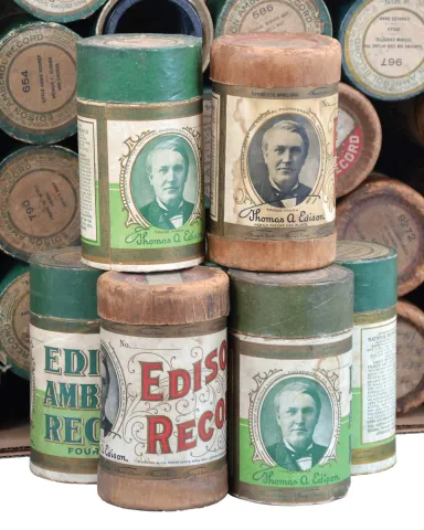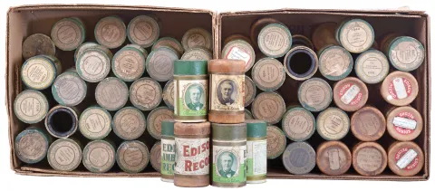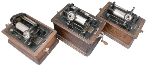 Phonographs- 3 (Three) Thomas A. Edison, Orange, NJ, "Standard" model spring driven cylinder phonographs in oak veneer cases including approximately 100 cylinder records.