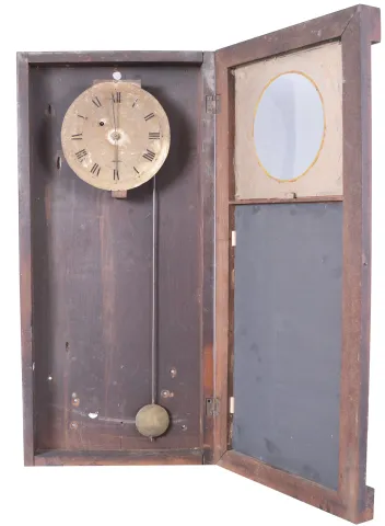 Benjamin Morrill, Boscawen, New Hampshire, 8 day, weight brass movement New Hampshire Mirror wall timepiece.