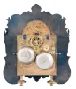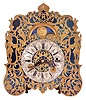Austria, a small, complicated, grand sonnerie striking shelf or table clock, the blued steel dial plate with overlaid fretted, foliate engraved mask, Roman numeral, arcaded, engraved silvered dial with subsidiary day and date displays, and with engraved