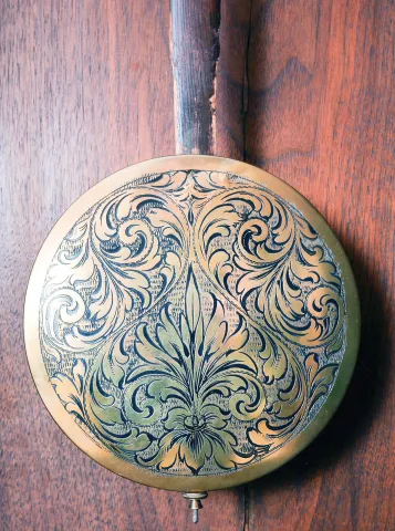 The case retains its original finish and is in excellent condition with minor scrapes and scuffs on high surfaces. The movement has been remounted on a new seatboard. The weights are replacements.