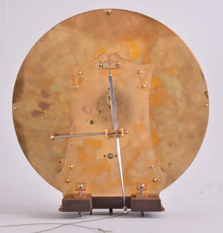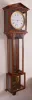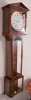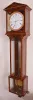 Austria, after Franz Lehrner, in Wein, modern reproduction of year running Laterndluhr, weight driven, 2 weights hung from a single pulley via yoke. the wooden wedges that hold the hood to the lower case have come loose, and one is missing. Balance of case is well made and intact. The movement is a copy of Lehrner's work in the early 19th century, with robust profile round pillars and shaped plates with 4 latches. The train has 6 wheels with fine count. The pendulum is to Harrison's design with alternating steel and brass rods, and hanging from a knife edge stud. Enamel dial has chip at winding hole, otherwise fine.