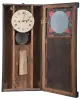 William G. Emerson, Newport, Maine, 8 day, time and strike, weight brass movement New Hampshire style mirror clock. Mahogany case in original finish has some a couple age cracks on the lower left side. One of the embossed brass caps on the lower left block is missing. Original dial glass has some loss to the background. Original mirror. Original painted dial has some wear and stains. At the right angle the signature can still be seen. Original hands. For more information on this maker see "Clockmakers & Clock making in Maine 1770-1900" by Joseph Katra, Jr., Pg 130.
