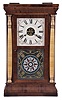 Seth Thomas Clock Co., Plymouth Hollow, Conn., "Column" shelf clock with a weight driven, 30 hour, time and strike movement in a mahogany veneered case with shell columns and gilt caps.