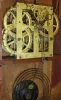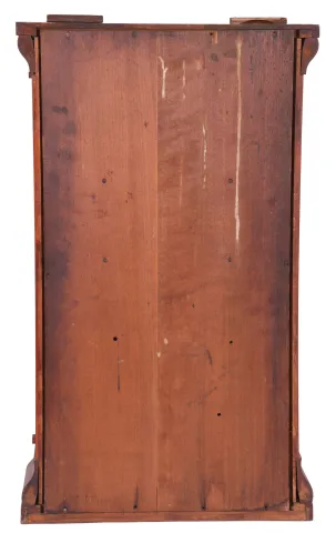 The case is in generally good condition with some veneer loss at the top and base of the case. The original painted dial is in very good condition with loss only at the mounting points. The hands are original. The movement is signed. The door glasses are original with the lower glass geometric design having a black backing added later.