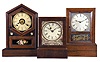 Clocks- 3 (Three): (1) Jeromes & Co., (New Haven Clock Co.) New Haven, Conn., 8 day, time, strike and alarm spring brass movement shelf clock, c1875 (2) Chauncey Jerome, New Haven, Conn., 30 hour, spring brass movement cottage timepiece, c1850 (3) Unknown