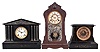Clocks- 3 (Three) Ansonia Mantel: (1) Ansonia Clock Co., New York, "Grenoble " mantel clock, 8 day, time and strike, spring-driven movement in a black enameled iron case, c1914; (2) Ansonia Clock Co., New York, "Servia", mantel clock, 8 day, time and