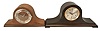 Clocks- 4 (Four) Time and Strike Mantel: (1) Seth Thomas Clock Co., tambour clock, 8 day, time and strike with Westminster chime, spring-driven No. 124 movement in a mahogaNew York case with silvered dial. (2) GermaNew York, tambour clock, 8 day, time and