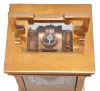 polished brass case is bright and in very good condition. Two of the beveled glasses have very small chips in the corners. The upper portion of the silvered dial is very dark where the steel hands rested for a long time. Unsigned movement ticks and strikes.