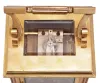 brass case has a bright polish with some small dents on the top of the back side. Three of the five beveled glasses have small, visible chips at the corners. The dial and hands are very good. The back plate of the unsigned movement is covered in a film of oil and could use cleaning. Ticks briskly and strikes.